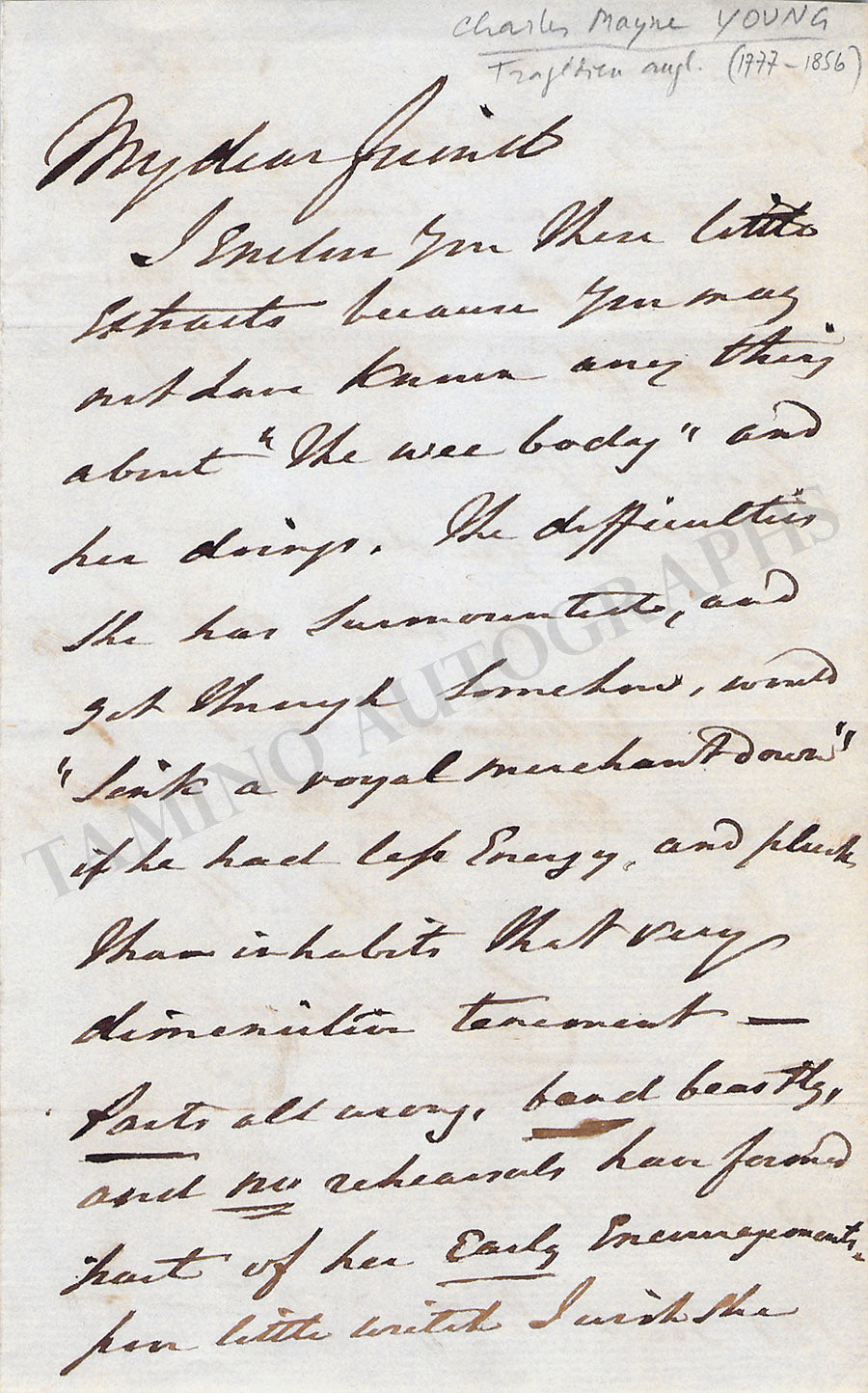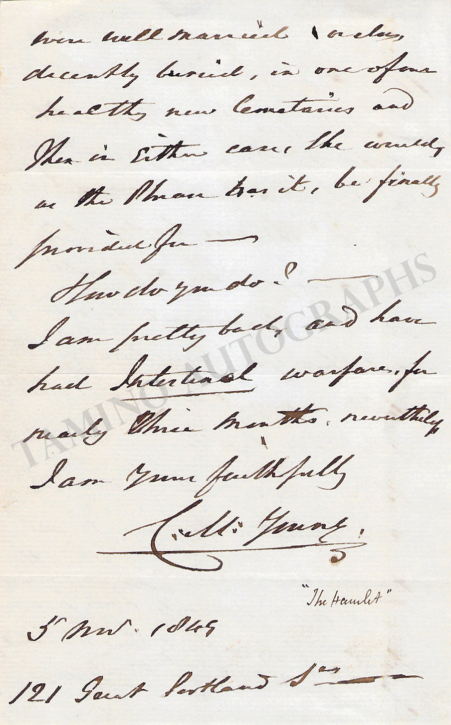 Young, Charles Mayne - Autograph Letter Signed 1849 Young, Charles Mayne - Autograph Letter Signed 1849