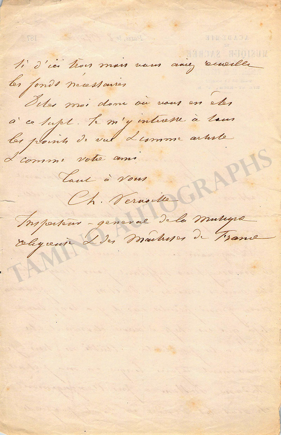 Vervoitte, Charles - Autograph Letter Signed 1872