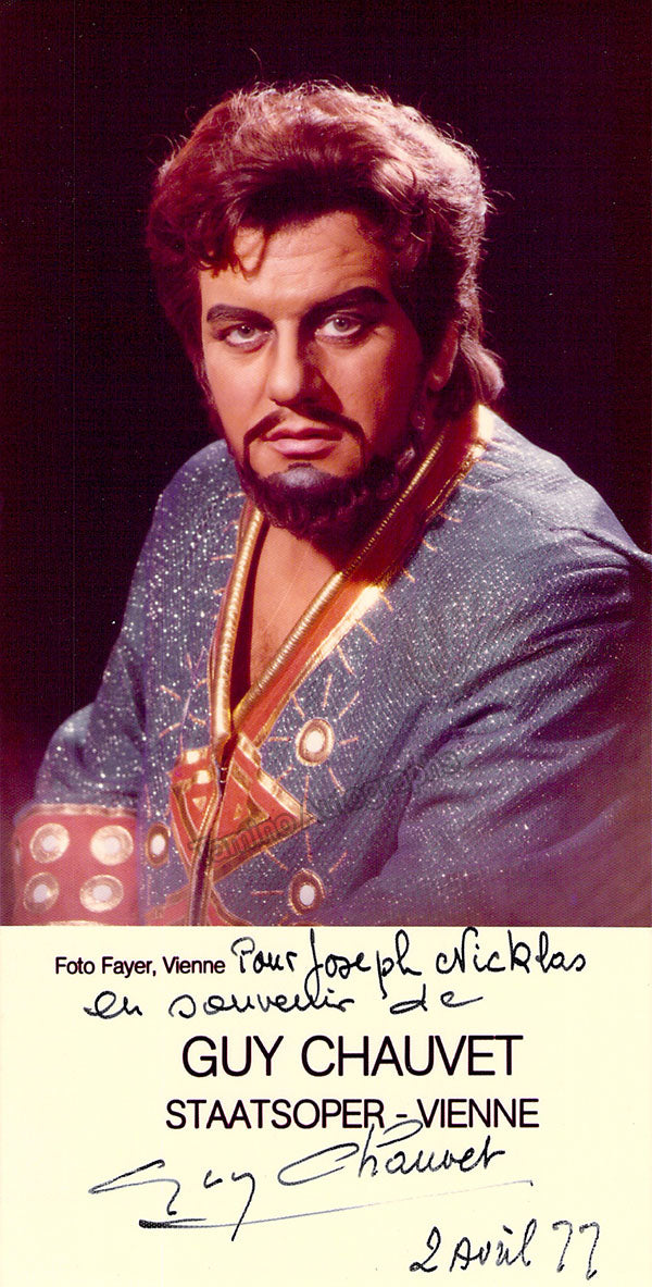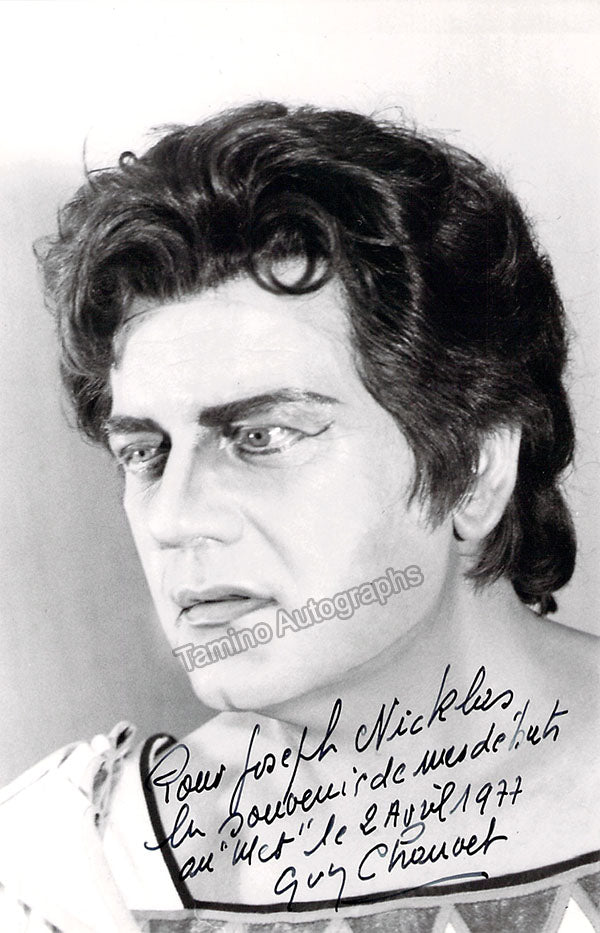 Signed photograph, shown as Samson in Saint Saen's Samson et Dalila, inscribed at the Metropolitan Opera, New York and dated in 1977. Size is 3.5 x 5.5 inches, in excellent condition.