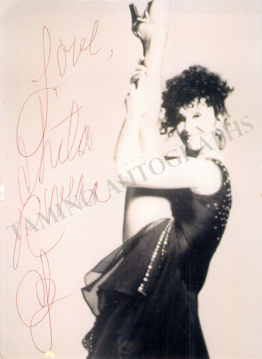 Fine black-and-white photograph signed by her, shown in performance. Size is 3.5 x 4.8 inches, in excellent condition.
