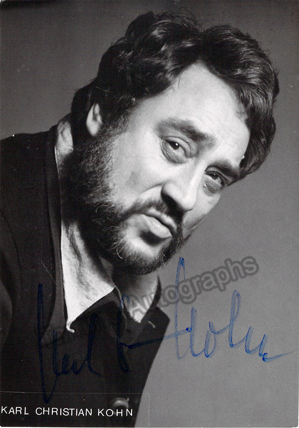 German bass (1928-2006), signed photo postcard, shown as himself. Stamped on verso by photographer Sabine Toepffer, Munich. Size is 4 x 6 inches.