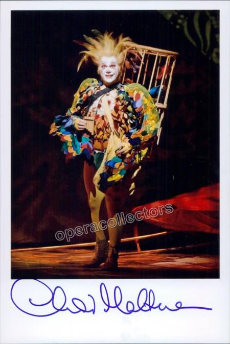 English baritone (b.1970), gorgeous signed photo, shown as Papageno in Die Zauberflote, opera by Mozart. Size is 5 x 7 inches
