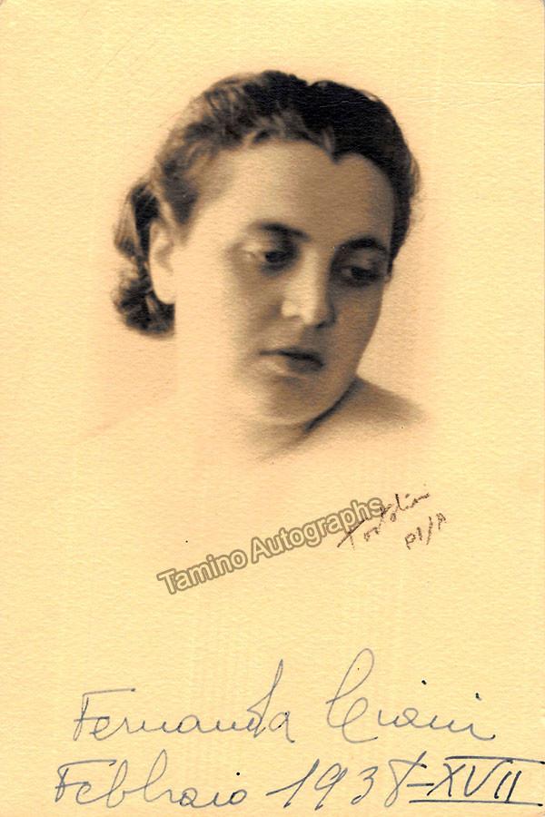 Italian soprano (1904-1975), signed photo, shown as herself, dated in 1938. Stamped on verso by photographer Tortolini, Pisa . Also signed by photographer in pencil on the front. Size is 3.75 x 5.75 inches.
