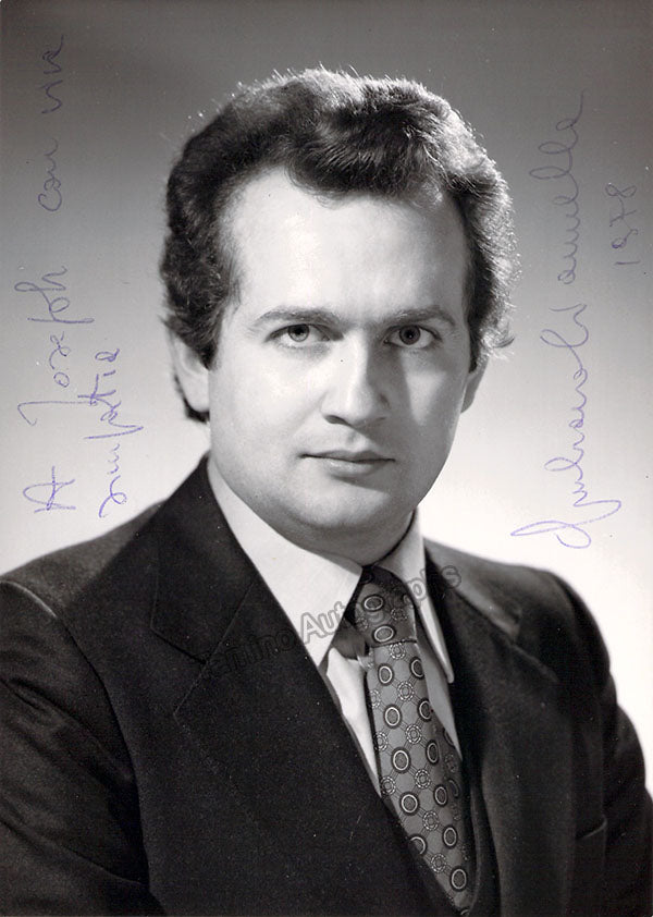 Italian tenor (1943-2008), signed photograph, shown as himself, inscribed and dated in 1978. Size is 4 x 5.75 inches, in excellent condition.
