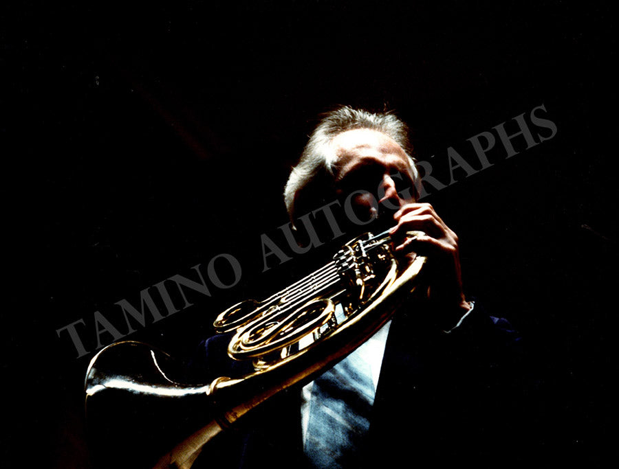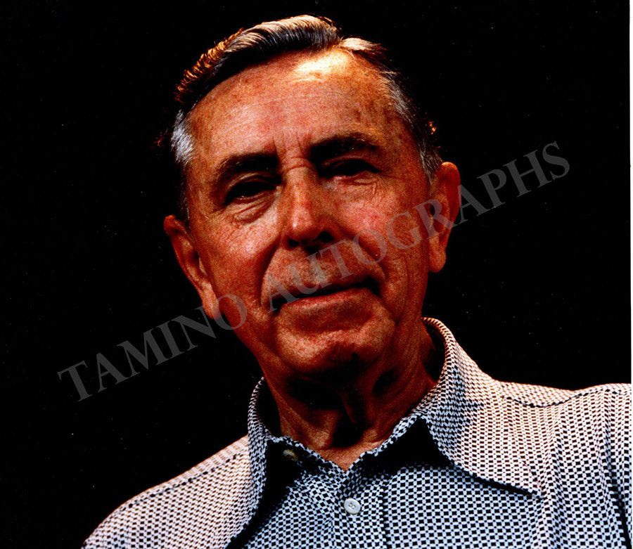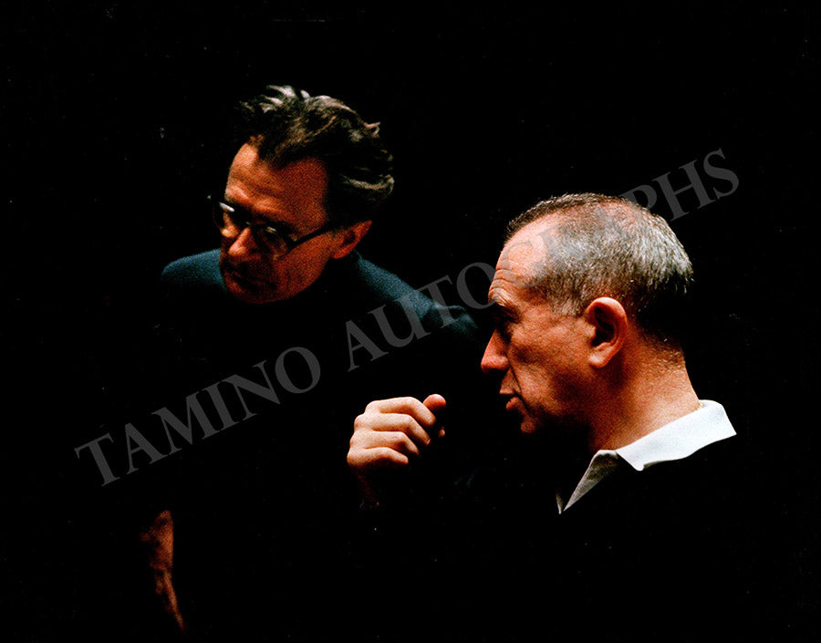 Photograph taken in Philadelphia, 1983, shown next to conductor Stanislaw Skrowaczewski. Size is 14 x 11 inches, minor mounting traces on verso, otherwise in excellent condition.