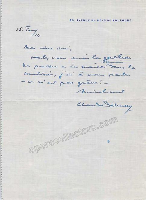 Debussy, Claude - Autograph Letter Signed 1914 - Tamino Debussy, Claude - Autograph Letter Signed 1914 - Tamino Debussy, Claude - Autograph Letter Signed 1914 - Tamino