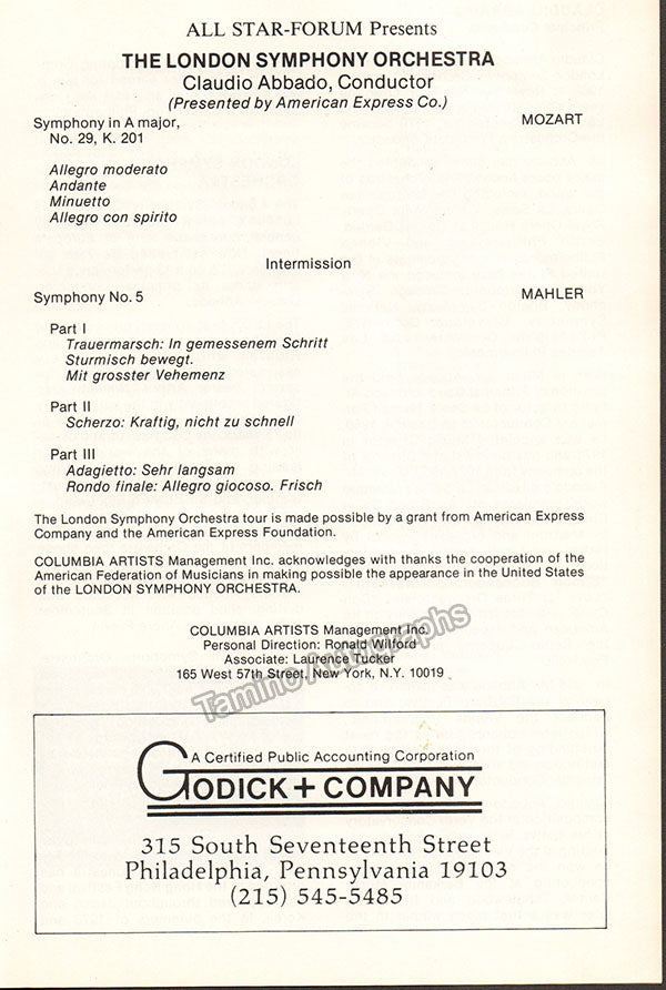 Abbado, Claudio - Signed Program Philadelphia 1988