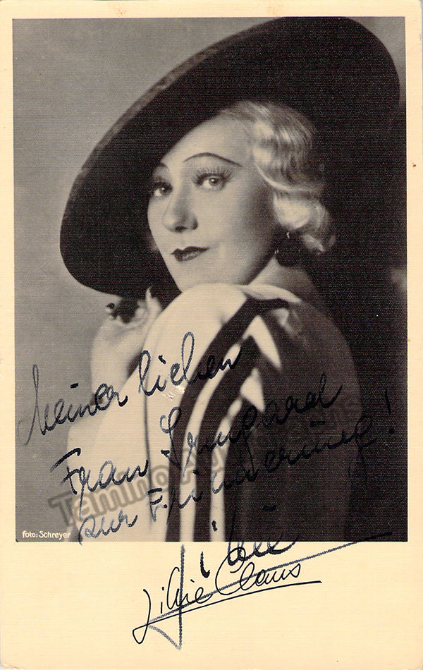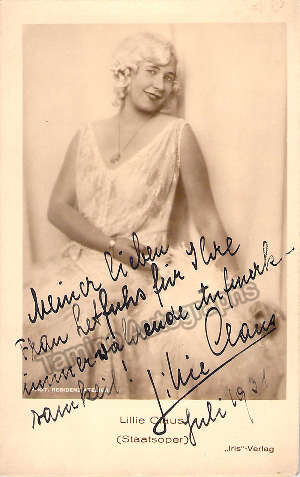 Signed postcard photograph, shown as herself. Photo by Residenz photo studio. Size is 3.25 x 4.5 inches, in excellent condition.