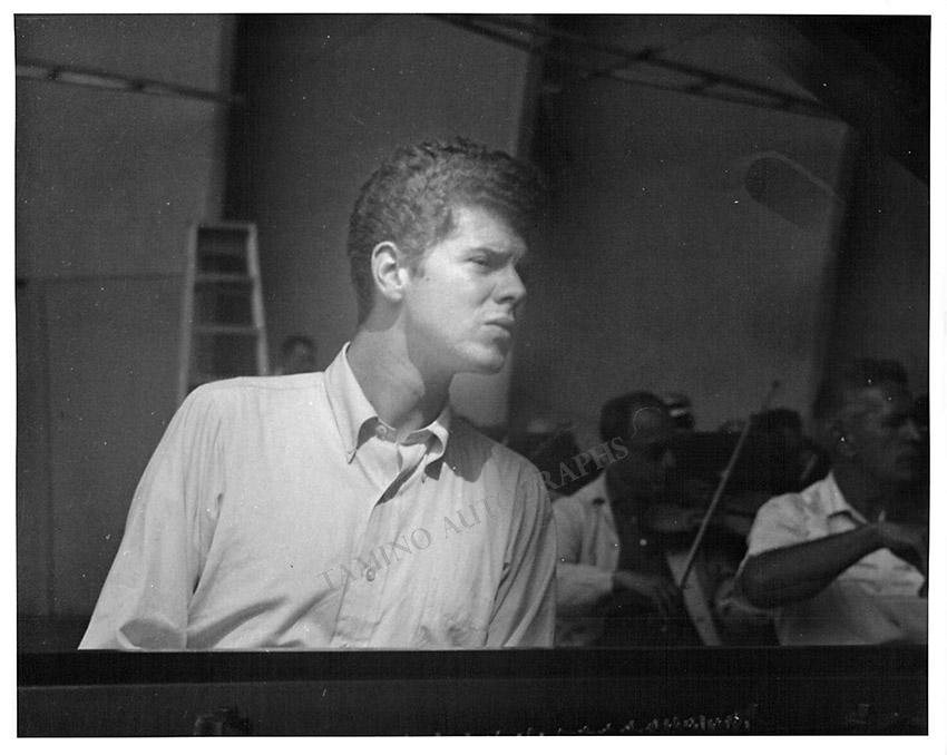 Original prints, each signed on verso by photographer Jim Arkatov, showing the famous American pianist in a rehearsal, dated by Arkatov in 1959. Van Cliburn is shown young, just months after his legendary victory in Russia, 1958, in the International Tchaikovsky Piano Competition. Each photo is 8 x 10 inches, in excellent condition. SOLD INDIVIDUALLY