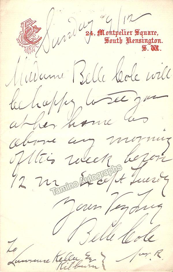 Cole, Belle - Autograph Letter Signed