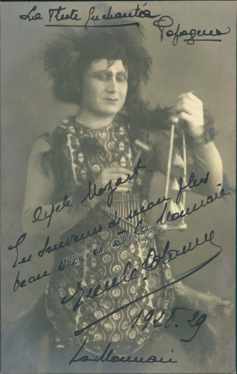 Signed postcard photograph, shown as Papageno in Mozart's Die Zauberflote. Size is 3.5 x 5.5 inches, in excellent condition.