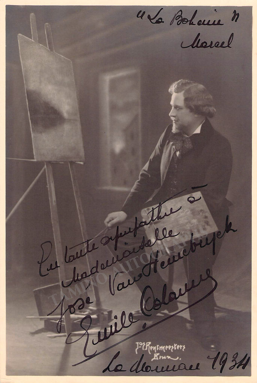 Signed photograph, shown as Marcello in Puccini's La Boheme, inscribed, dated in 1934. Bold signature with very clear handwriting. Stamped on verso by photographer Joseph Rentmeesters, Brussels. Size is 4.5 x 6.75 inches, attractive vintage photo in excellent condition.