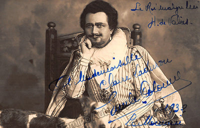 Signed postcard photograph, shown as himself, inscribed and dated in 1929 at the Theatre de la Monnaie, Brussels. Size is 3.5 x 5.5 inches, very small creases on edges, otherwise in very good condition.