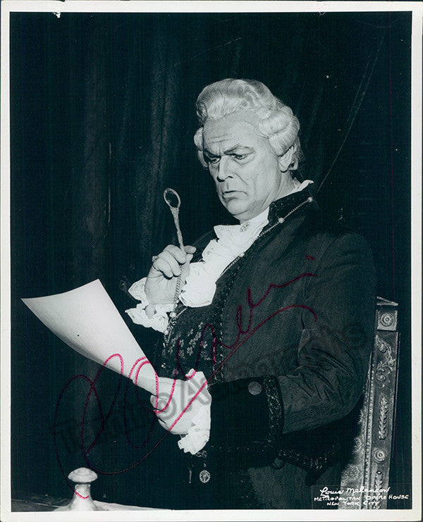 Signed photo of the Italian baritone (1918-2006) as Scarpia in Puccini's Tosca, 8 x 10 inches. Minor damage over the top margin, not affecting the image.