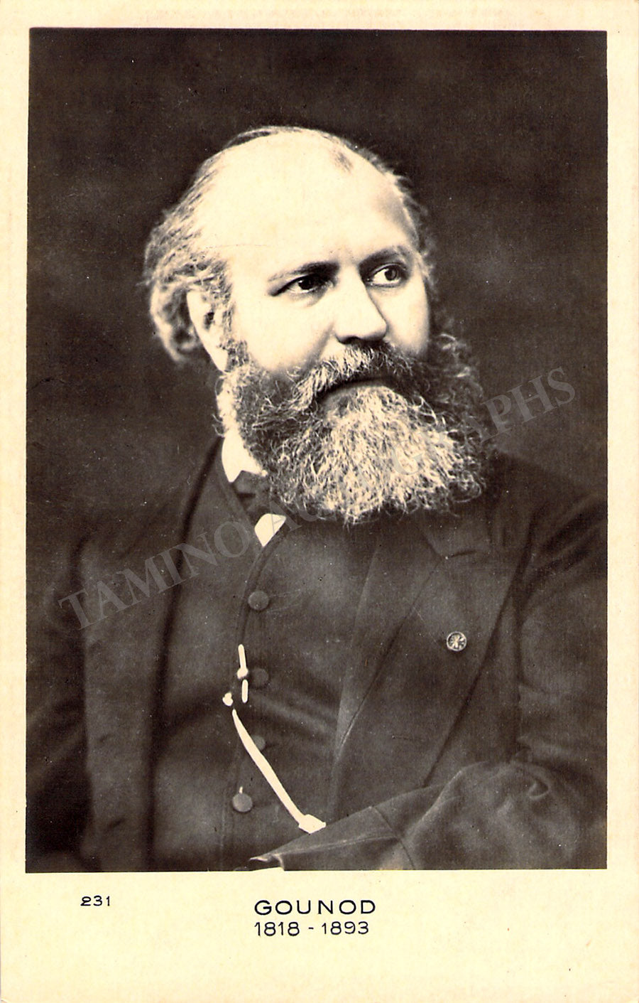 Fine black-and-white portrait of the composer mounted on a slightly larger piece of cardboard.
