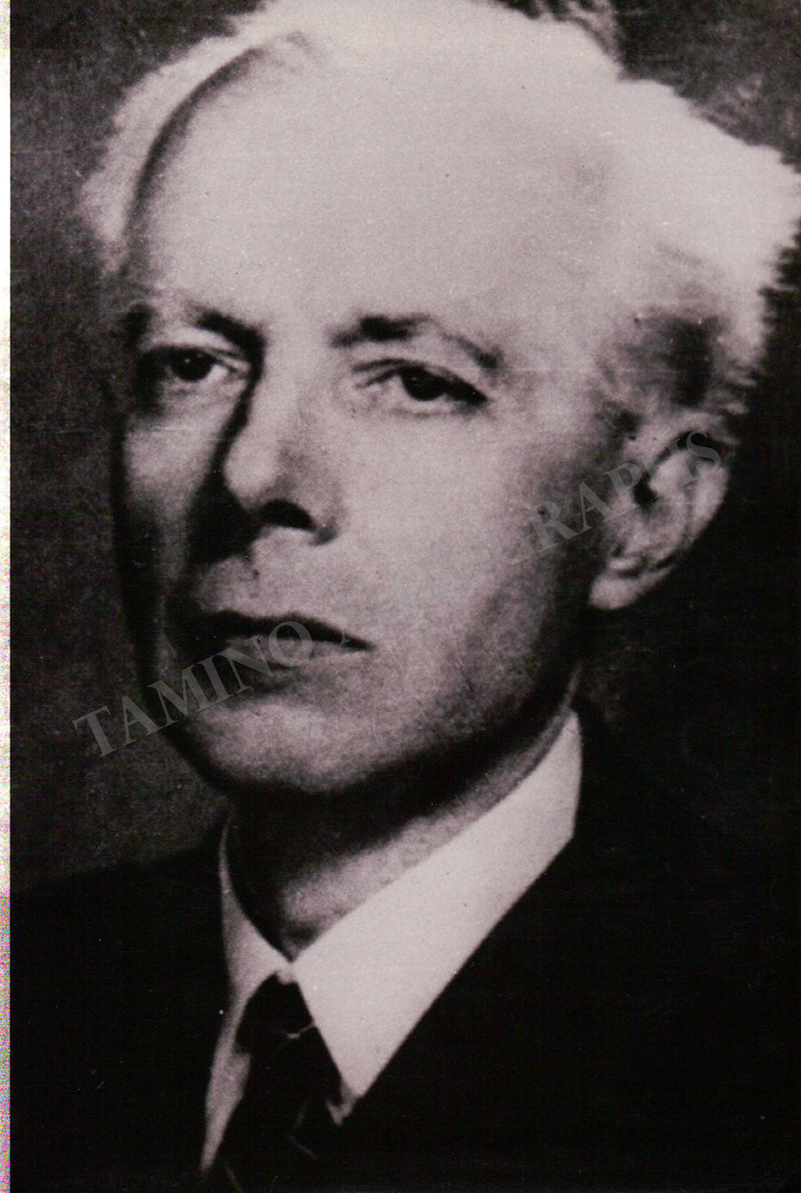 Fine black-and-white photograph of the composer. Size is 7.1 x 9 inches, in excellent condition.