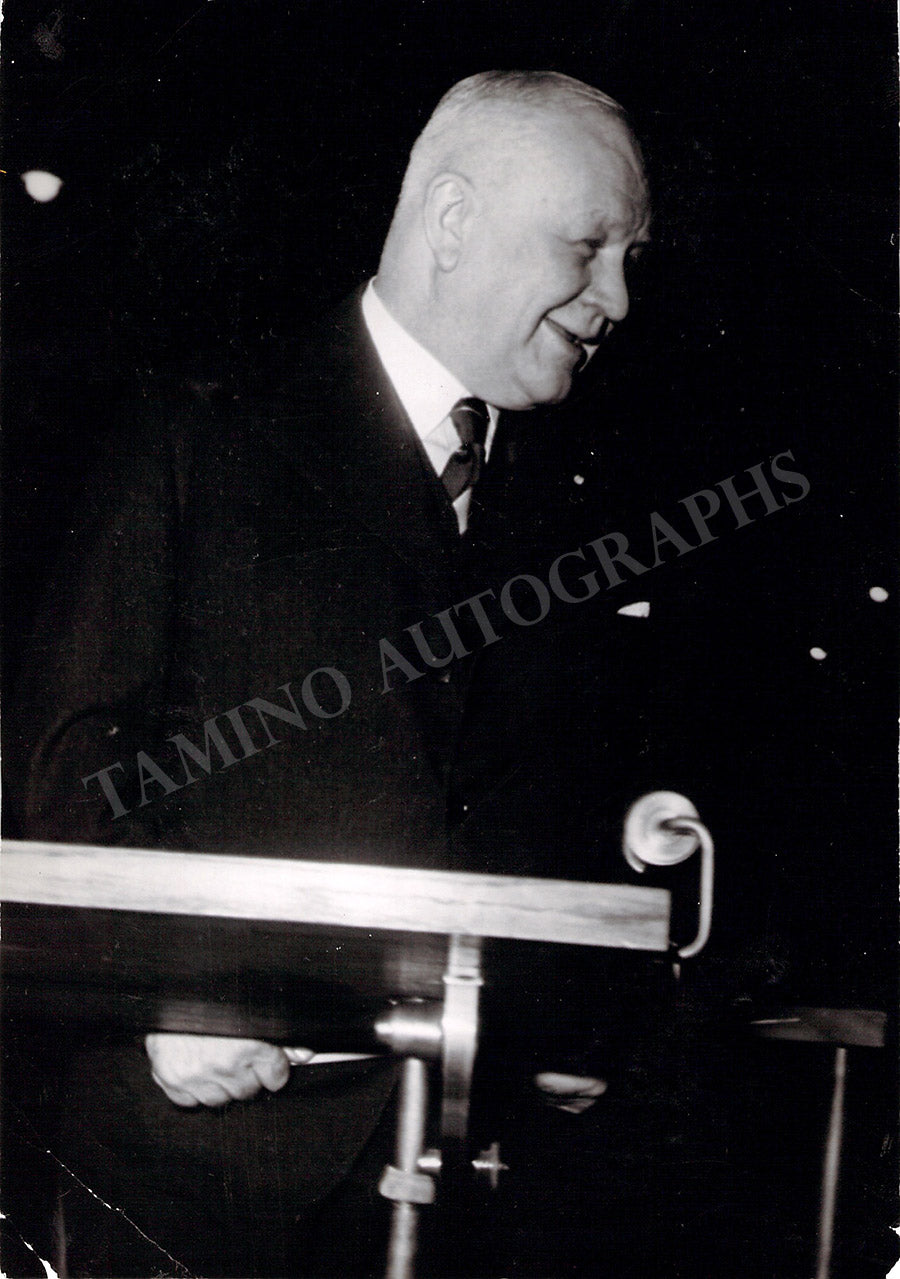 Nice black-and-white photograph of him, shown at the podium during a rehearsal. Size is 4.8 x 6.8 inches, minor creases, in very good condition.