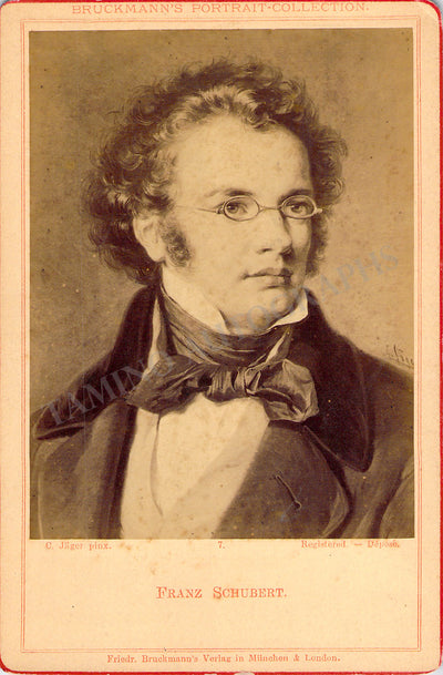Fine cabinet of a portrait of the composer by Bruckmann. Size is 4.4 x 6.75 inches, in excellent condition.