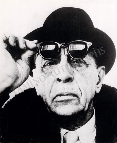Fine black-and-white photograph of him; ink-stamped on verso by photographer Georges Farret, Marseille. Size is 8.1 x 10 inches, various creases, otherwise in very good condition.
