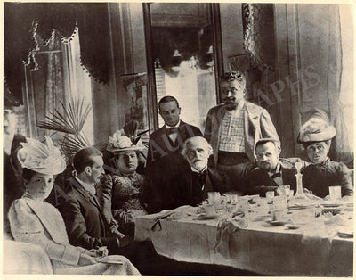 Beautiful black-and-white modern print of an old photograph of Verdi at Montecatini. Size is 9.75 x 7.75 inches, in excellent condition.