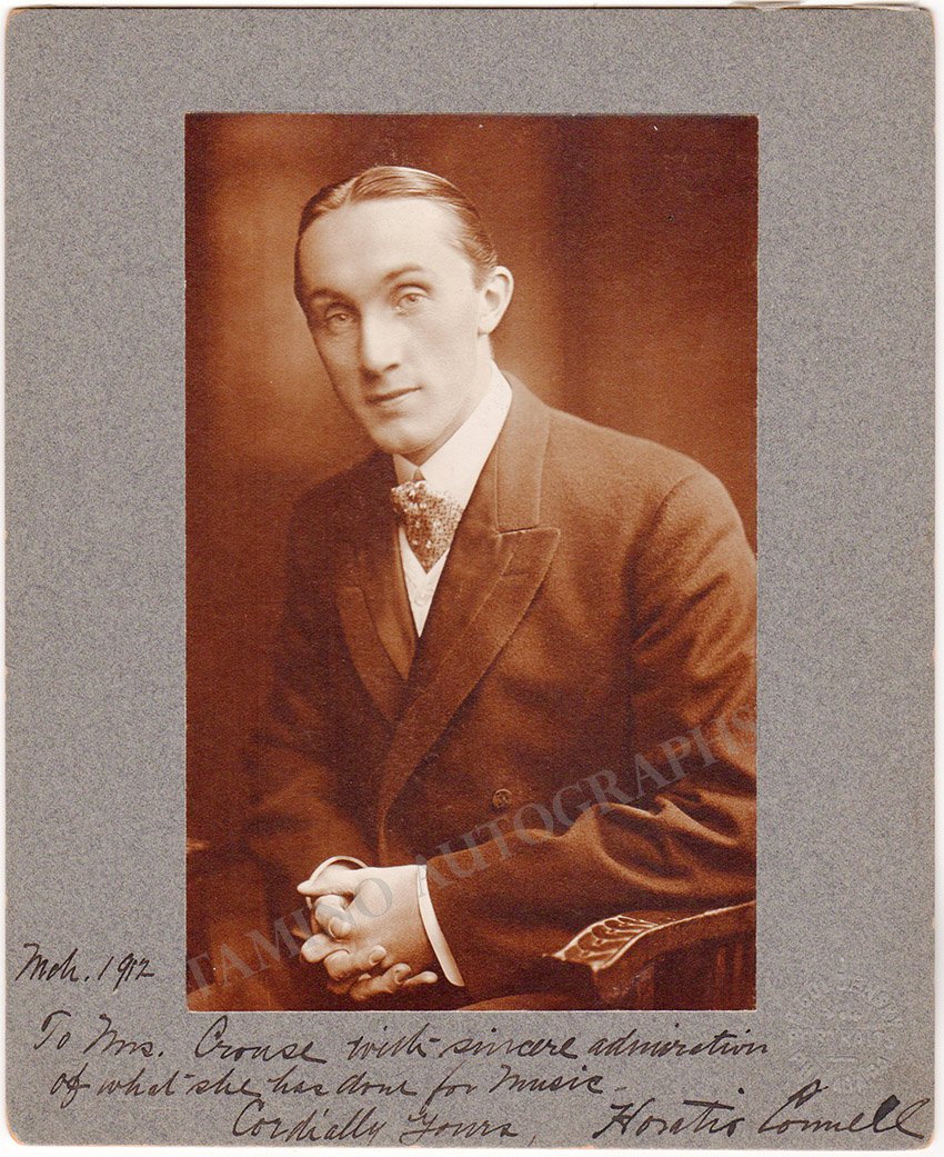 American bass baritone (1876-1936).  Signed photo, shown as himself, inscribed and dated by him in 1912 on a photographer mat; blind stamp on front by photographer E. Goldensky, Philadelphia.  Size is 6.75 x 8.25 inches, mounting traces on verso, in excellent condition.