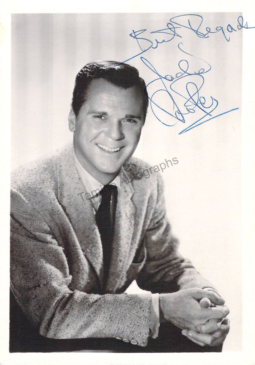 Fine black-and-white photograph signed by him with a short sentiment, shown young. Size is 4.9 x 7 inches, minor mounting traces on verso, otherwise in excellent condition.