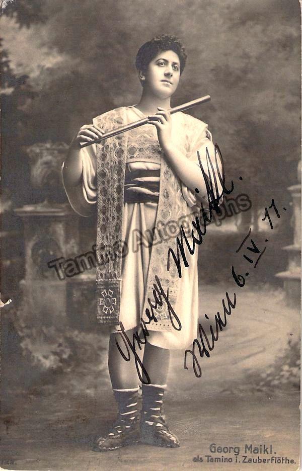 Signed photo postcard of the Austrian tenor (1872-1951), shown as Tamino in The Magic Flute by Mozart, dated in 1917. Size is 3.5 x 5.25 inches, in excellent condition