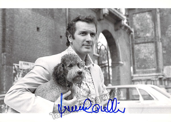 Signed photograph, shown as himself with his pet dog. Photo by Erika Davidson, New York. Size is 5 x 7 inches, in excellent condition.