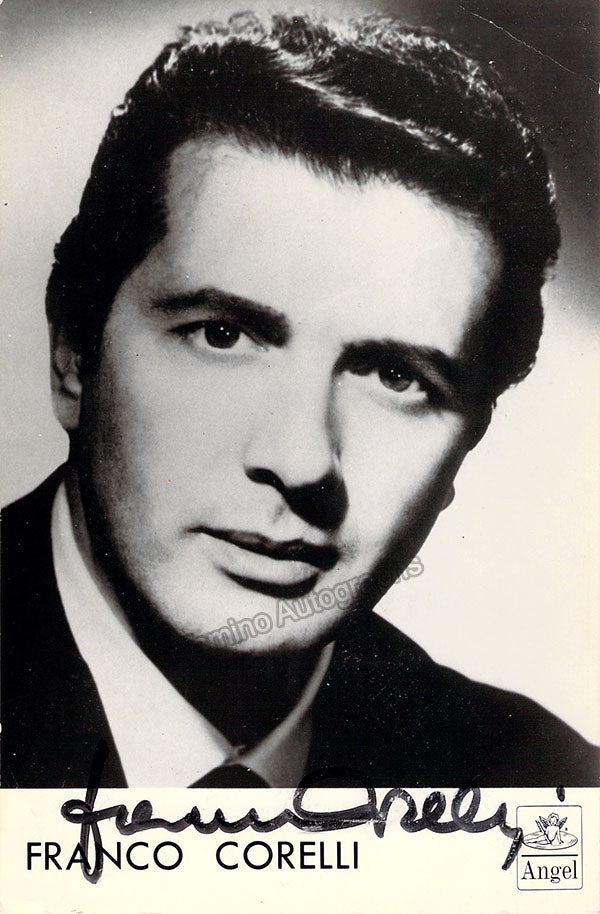 Fantastic print (reproduction) of the star tenor by artist Selene Fung, signed by Corelli in 1987. Size is 8.4 x 11 inches, some rust stains, in overall very good condition.
