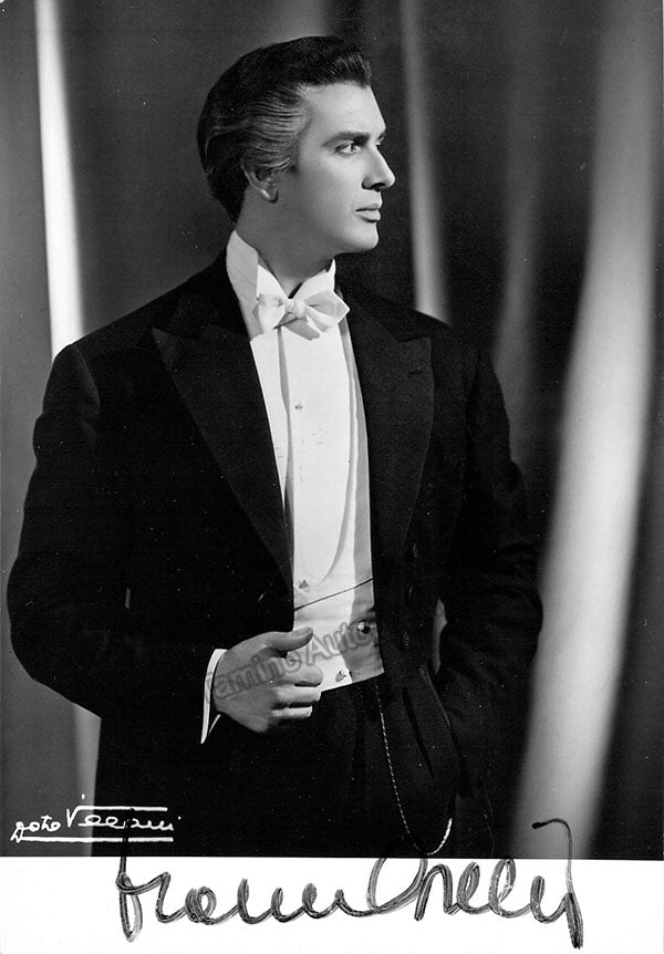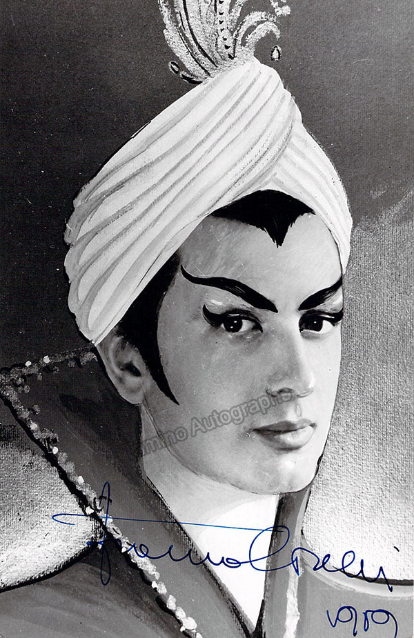 Signed photograph, shown in role (likely Calaf in Puccini's Turandot), dated in 1959. Size is 3.75 x 6 inches, in excellent condition.