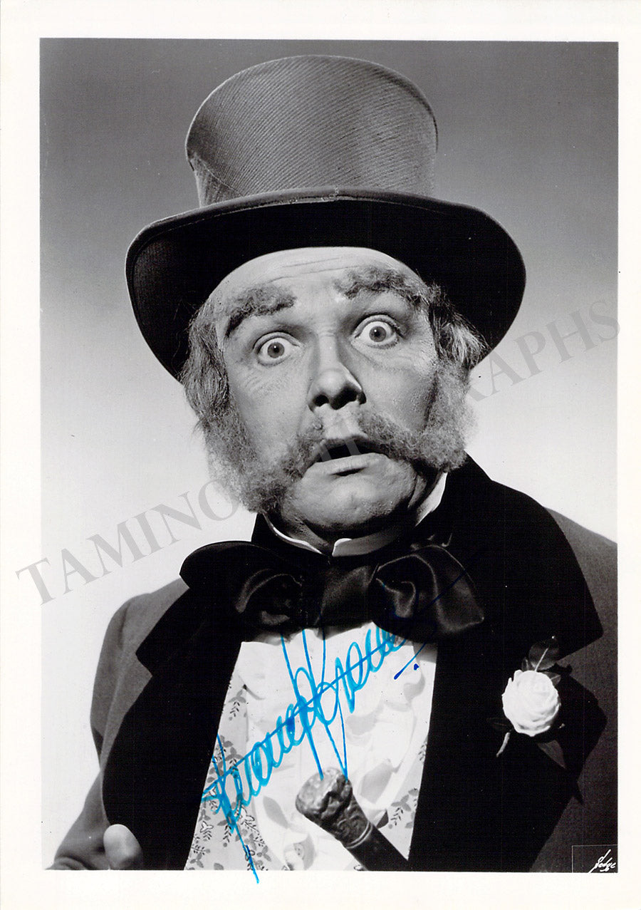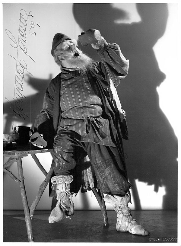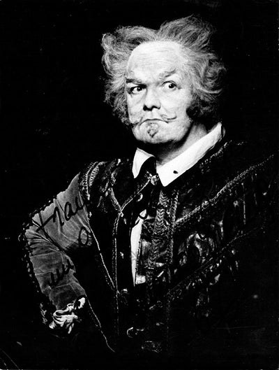 Signed photograph, shown in role (likely the title role of Verdi's Falstaff), dated in 1966. Size is 7 x 9.5 inches, small creases and bends and stains on verso, otherwise in good condition.
