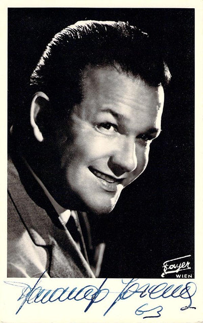 Nice black-and-white photograph signed by him, shown as Leporello in Mozart's opera Don Giovanni; ink-stamped on verso by photographer Fayer (Vienna). Size is 3.3 x 5.3 inches, in excellent condition.