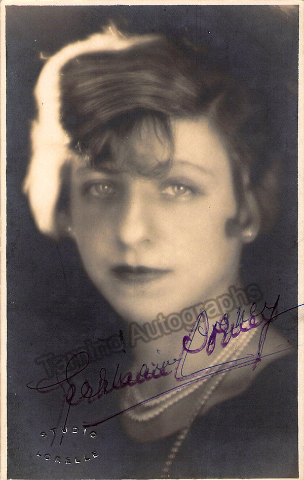 French soprano (1901-2001), signed photo postcard, shown as herself. Blind stamp on front by Studio Lorelle. Size is 3.5 x 5.5 inches.