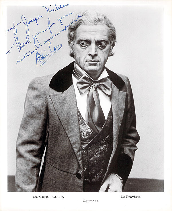 Signed photograph, shown as Marcello in Puccini's La Boheme, inscribed. Size is 8 x 10 inches, in excellent condition.