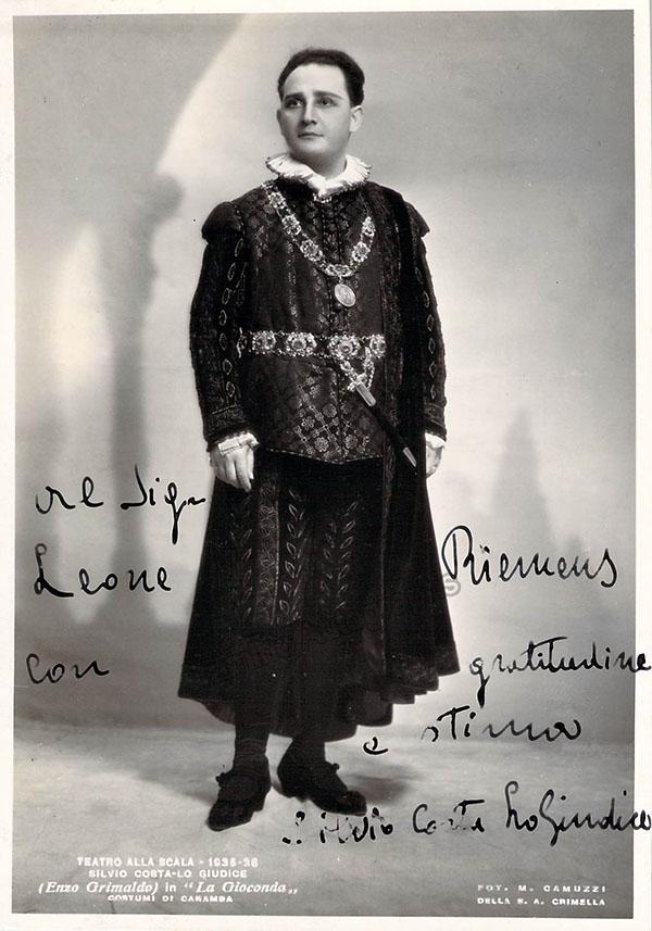 Italian tenor (1895-1982), signed photo postcard, shown as Enzo in Ponchielli's La Gioconda. Inscribed. Photo by M. Camuzzi, La Scala, Milan. Size is 4 x 5.75 inches, in excellent condition.