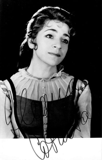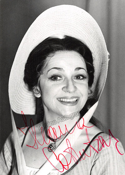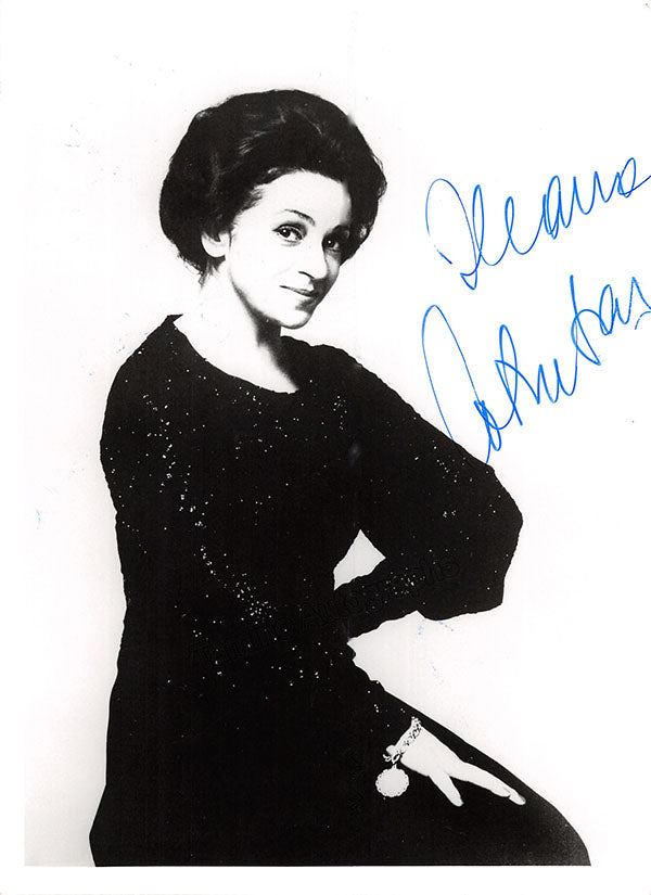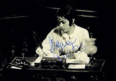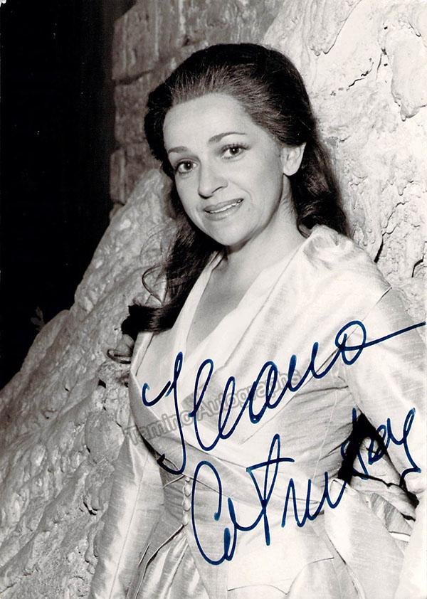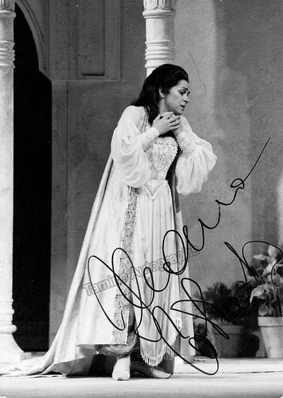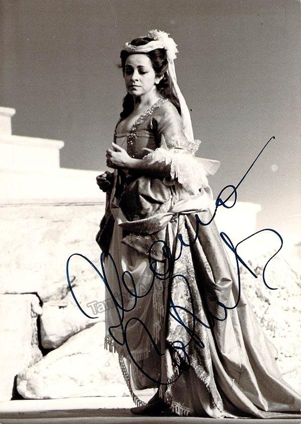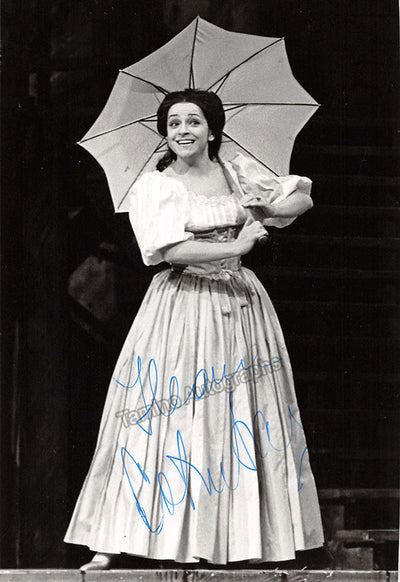 Signed photograph, shown as Adina in Donizetti's L'Elisir D' Amore. Stamped on verso by photographer Clive Barda, London. Size is 4.25 x 6.25 inches, in excellent condition.