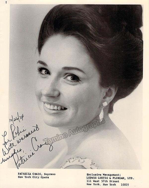 American soprano and voice teacher (b. 1947), signed publicity photograph, shown as herself, inscribed and dated in 1974. Size is 8 x 10 inches, in excellent condition.