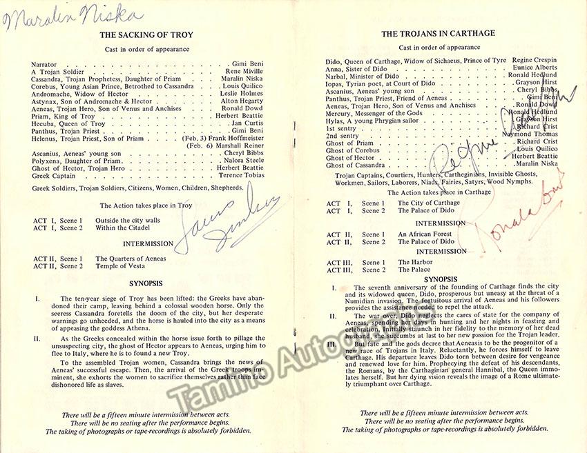 Program for a performance with the Opera Company of Boston, 1972, signed by the four artists on central program page. Size is 5.5 x 8.4 inches, in excellent condition.