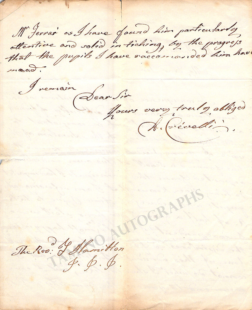 Crivelli, Domenico - Autograph Letter Signed 1843 Crivelli, Domenico - Autograph Letter Signed 1843