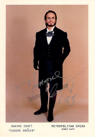 Signed photo, shown in the title role of Tchaikovsky's Eugene Onegin, dated in 1993. Photo by Winnie Klotz, Metropolitan Opera, New York. Size is 5 x 7 inches, in excellent condition.