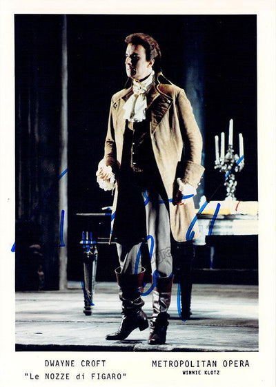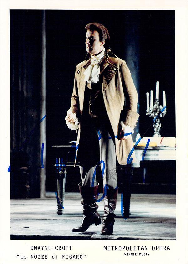 Signed photo, shown as the Count in Mozart's Nozze di Figaro. Photo by Winnie Klotz, Metropolitan Opera, New York. Size is 5 x 7 inches, in excellent condition.