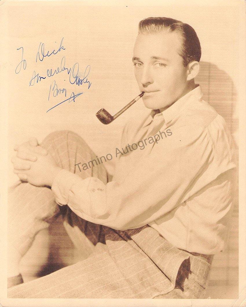 American singer (1903-1977), comedian, and actor, who was the first multimedia star, leader in record sales, radio ratings, and motion picture grosses from 1930 to 1954.  Beautiful sepia matte photograph signed and inscribed by him.  Size is 8 x 10 inches, minor smudge on the signature, minor creases over the lower-right corner, otherwise in very good condition.