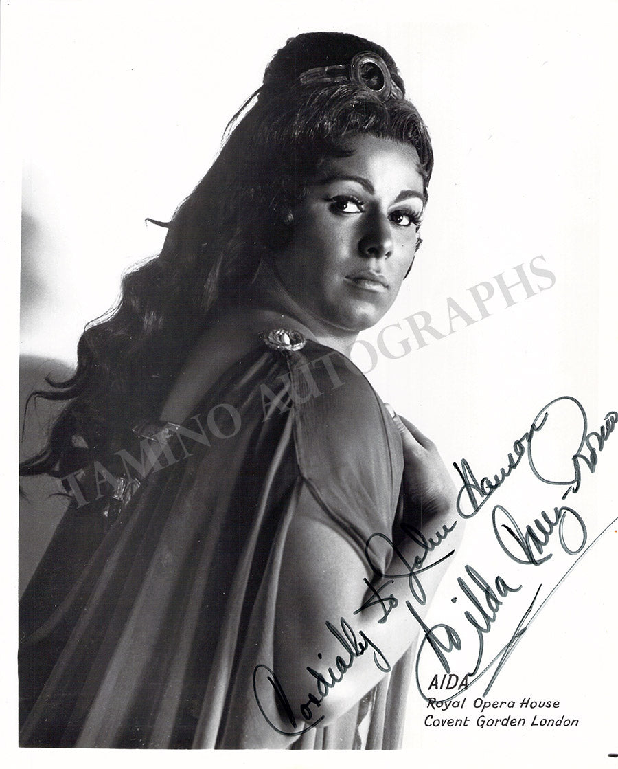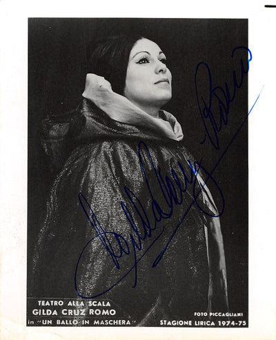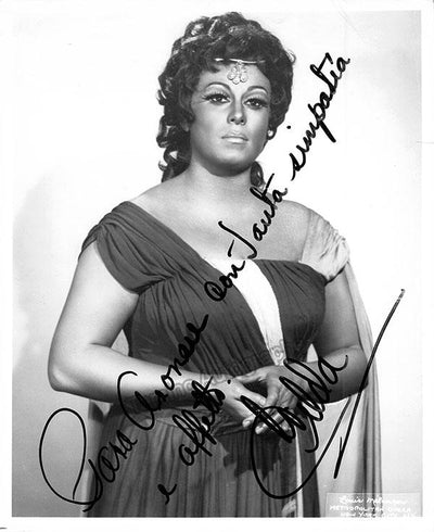 Signed photograph, shown as Elisabetta in Verdi's Don Carlo. Size is 8 x 10 inches, very small crease on top right, otherwise in excellent condition.