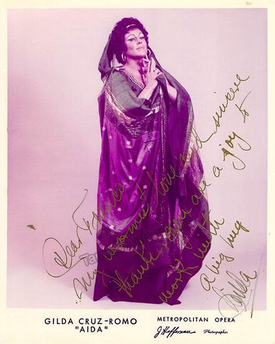 Signed photograph, shown in the title role of Puccini's Tosca, inscribed. Photo by Louis Melancon, Metropolitan Opera, New York. Size is 3.5 x 5.5 inches, in excellent condition.