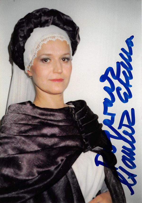 Hungarian soprano (b.1947), signed photo, shown in role, 1990. Size is 3.5 x 4.9 inches, in excellent condition.