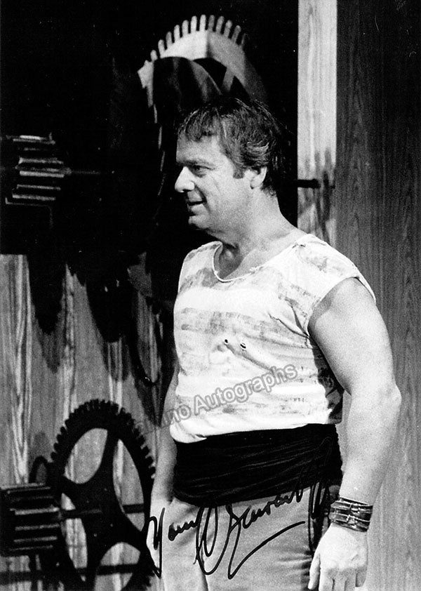 Signed postcard photograph, shown as Tevye in Fiddler on the Roof in Berlin in 1975. Photo by Fayer, Vienna. Size is 3.5 x 5.5 inches, in excellent condition.