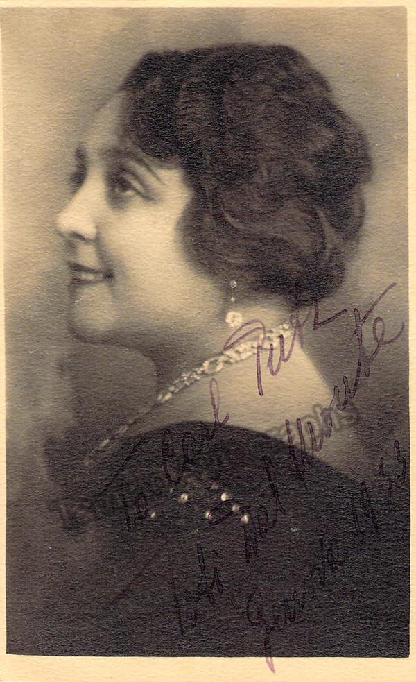 Italian soprano  (1893-1975), signed photo postcard, shown as herself. Inscribed and dated in 1953, Genova. Stamped on verso by photographer Braulin, Trieste. Size is 3.25 x 5.5 inches