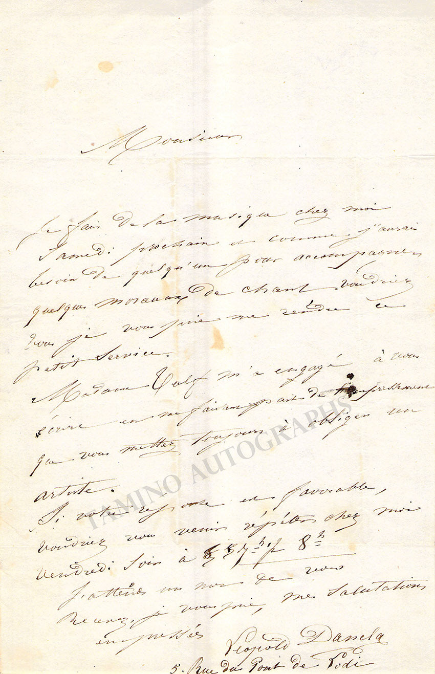 Autograph letter signed, one page in French, sold untranslated. Size is 5.3 x 8.25 inches, folds and minor stains, otherwise in very good condition.