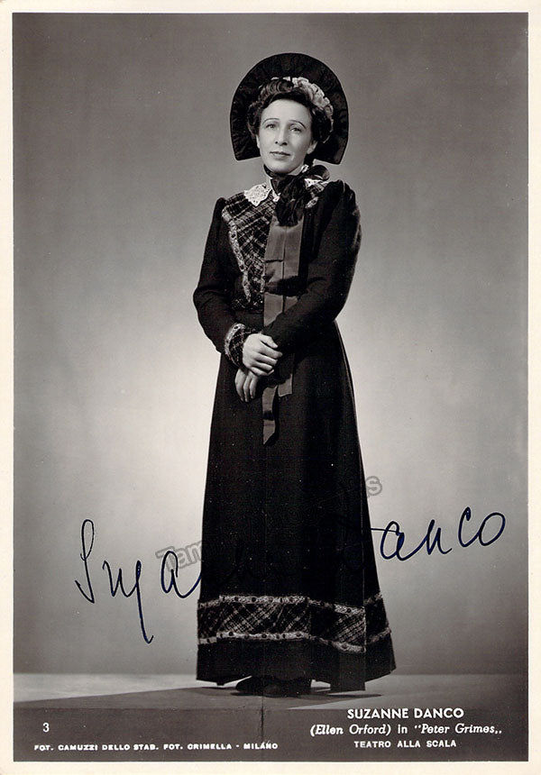 Belgian soprano (1911-2000), signed photograph, shown as Ellen Orford in Britten's Peter Grimes, photo by M. Camuzzi, La Scala, Milan. Size is 4 x 6 inches, in excellent condition.