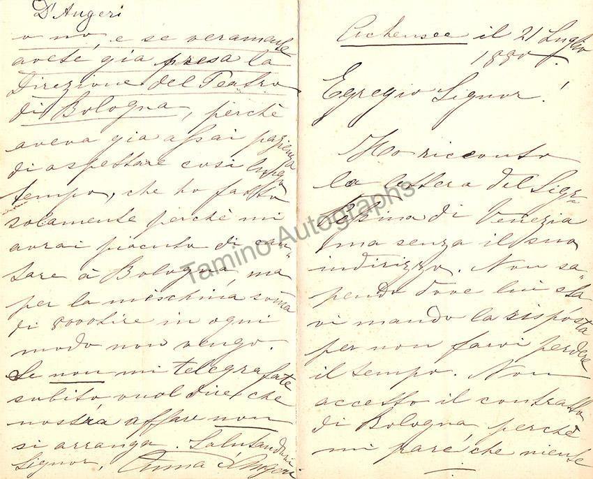 D'Angeri, Anna - Autograph Letter Signed - Tamino D'Angeri, Anna - Autograph Letter Signed - Tamino